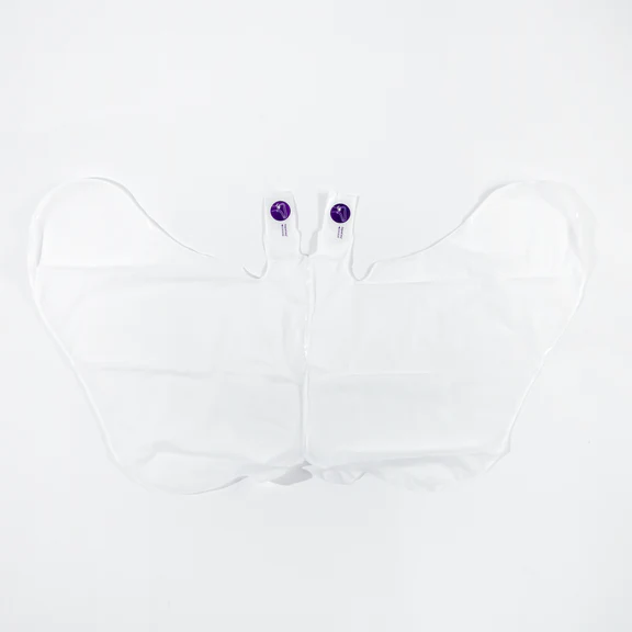 - Ayak maskesini poşetten çıkarın ve noktalı çizgi boyunca kesin.