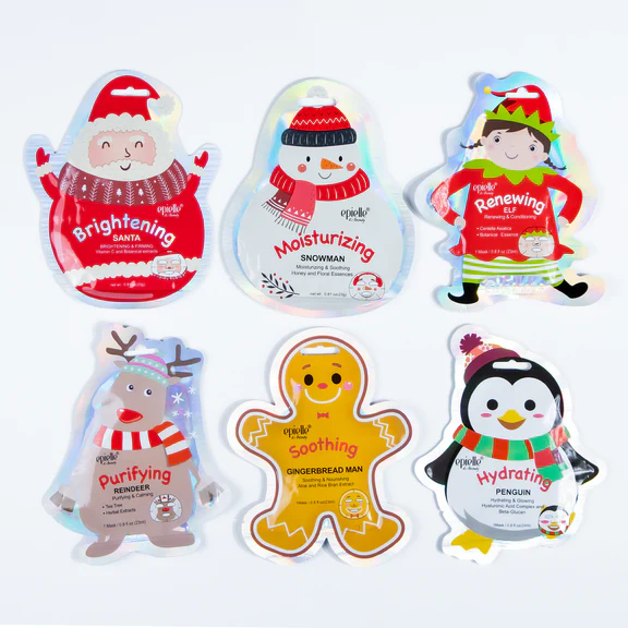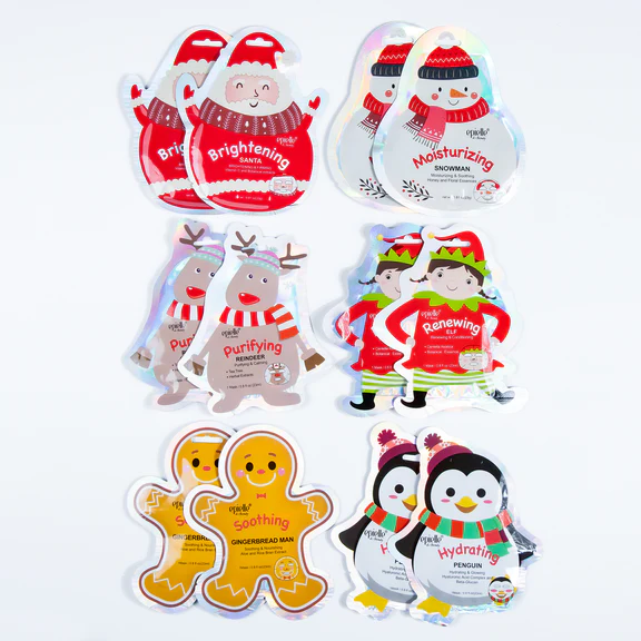 Mükemmel tatil parıltısı için hazırlanın! Bu epielle® Christmas Holiday Karakter Sheet Mask Pack, mükemmel bir stok dolusu ve arkadaşlarınız, aileniz veya sadece kendiniz için harika bir hediye yapar! Her maske farklı cilt bakımı endişeleri ile ilgilenir ve başa çıkar. %100 vegan ve paraben, sülfat ve ftalat içermeyen formülü ile.
