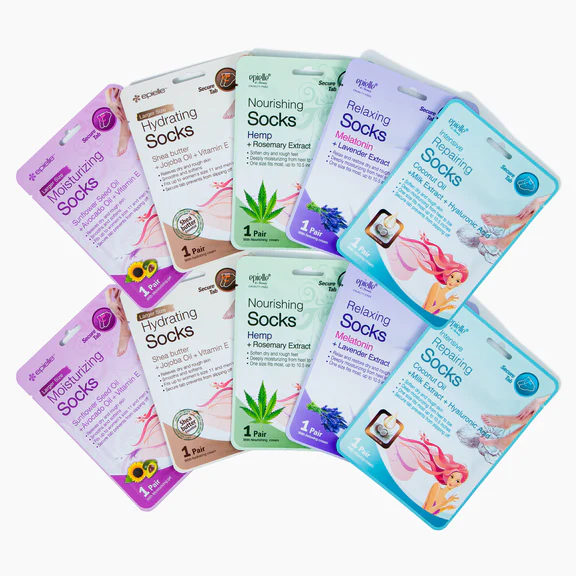 Zayıflamış, kuru ve sertleşmiş ayakları nemlendirirken, yumuşatırken ve rahatlatırken sakinleştirici bir zevk ve rahatlama anı için Epielle Çorap Maskelerini takın . Hepsini denemek için bu paketi alın! Pakette 5 maskenin tümü bulunur, eğer onları seviyorsanız veya paylaşmak istiyorsanız 10’lu paketi alın! Epielle ile cildinize daha iyi bakım yapın.