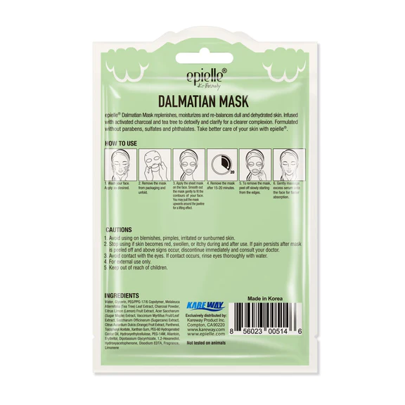 epielle Dalmatian Mask, mat ve susuz kalmış cildi yeniler, nemlendirir ve dengelemeye yardımcı olur. Aktif kömür ve tea tree (çay ağacı) özleriyle zenginleştirilmiştir, böylece cildi detoksifiye eder ve temiz bir görünüm sağlar. Paraben, sülfat ve ftalat içermeyen formülü ile cildinize daha iyi bakın.