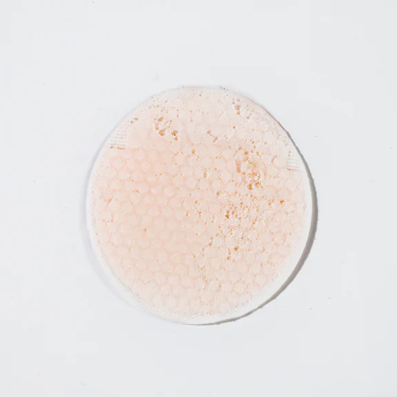 - Pedin ön (kabartmalı) tarafını, daha sonra açık pembe, köpüklü bir renk görünene kadar ovalayın, nazik, dairesel hareketlerle köpüğü yüzünüze ve boynunuza masaj yapın.