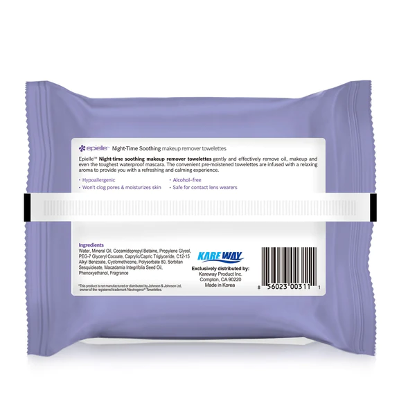 epielle Gece rahatlatıcı makyaj temizleme mendilleri yağı, makyajı ve hatta en dayanıklı suya dayanıklı maskarayı bile nazikçe temizler. Kullanışlı önceden nemlendirilmiş havlular size ferahlatıcı ve sakinleştirici bir deneyim sunar.