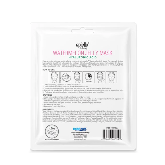 epielle® Karpuz Jöle Maskesi Doğal olarak elde edilen hidrojel jöle tabakası yüz hatlarına sıkı bir şekilde yapışır ve amino açısından zengin özleri doğrudan cilde iletir. Karpuz özü ayrıca cildi etkili bir şekilde nemlendirmek, rahatlatmak ve yenilemek için papaya özü ve hyaluronik asit ile doludur. Epielle ile cildinize daha iyi bakım yapın
