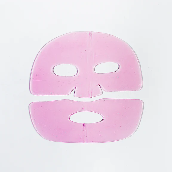 - Pembe hidrojel maskesini yüzünüze yerleştirin ve şeffaf plastik desteğini soyun ve atın.