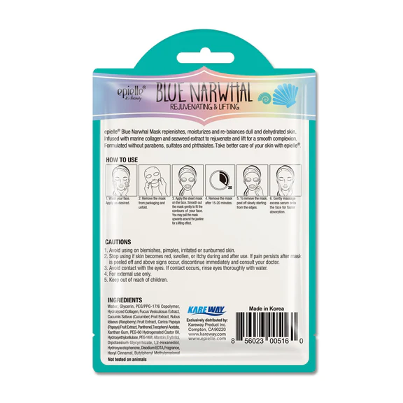 epielle Blue Narwhal Maskesi, donuk ve susuz kalmış cildi yeniler, nemlendirir ve dengelemeye yardımcı olur. Deniz kollajeni ve deniz yosunu özleri ile zenginleştirilmiştir, bu da pürüzsüz bir cilt için canlandırmaya ve kaldırmaya yardımcı olur. Paraben, sülfat ve ftalat içermeyen formülü ile cildinize daha iyi bakım yapın.