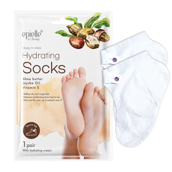 Çatlak ayaklar, kuru topuklar, ayak parmakları ve nasır için YENİ epielle® Nemlendirici Ayak Maskeleri – Shea yağı + Jojoba Yağı + E Vitamini ayakları nemlendirir ve tırnak etlerini yumuşatır