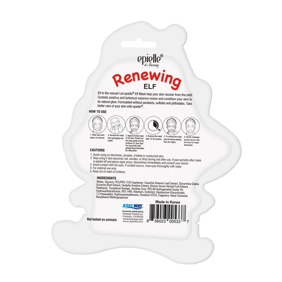 Elf kurtarıcı! Epielle Elf Maskesi, cildinizin soğuktan kurtulmasına yardımcı olsun! Centella Asiatica ve bitkisel esans, cildinizi doğal ışıltısına yenileyip koşullandırır. Paraben, sülfat ve ftalat içermeyen formülü ile cildinize epielle ile daha iyi bakın.